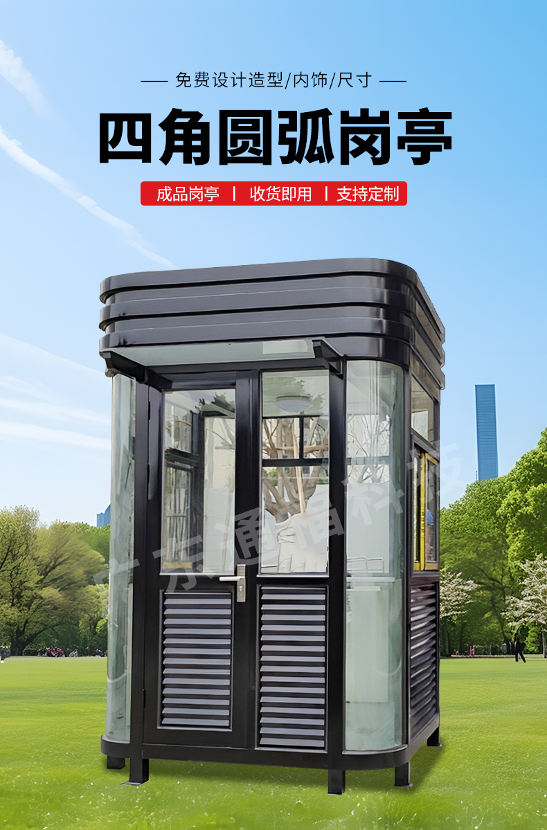 钢结构岗亭的外观多样,可以根据不同场所和需求进行个性化定制。内部空间布局合理,配备必要的办公设施和安全防护装置,为工作人员提供一个舒适、安全的工作环境。