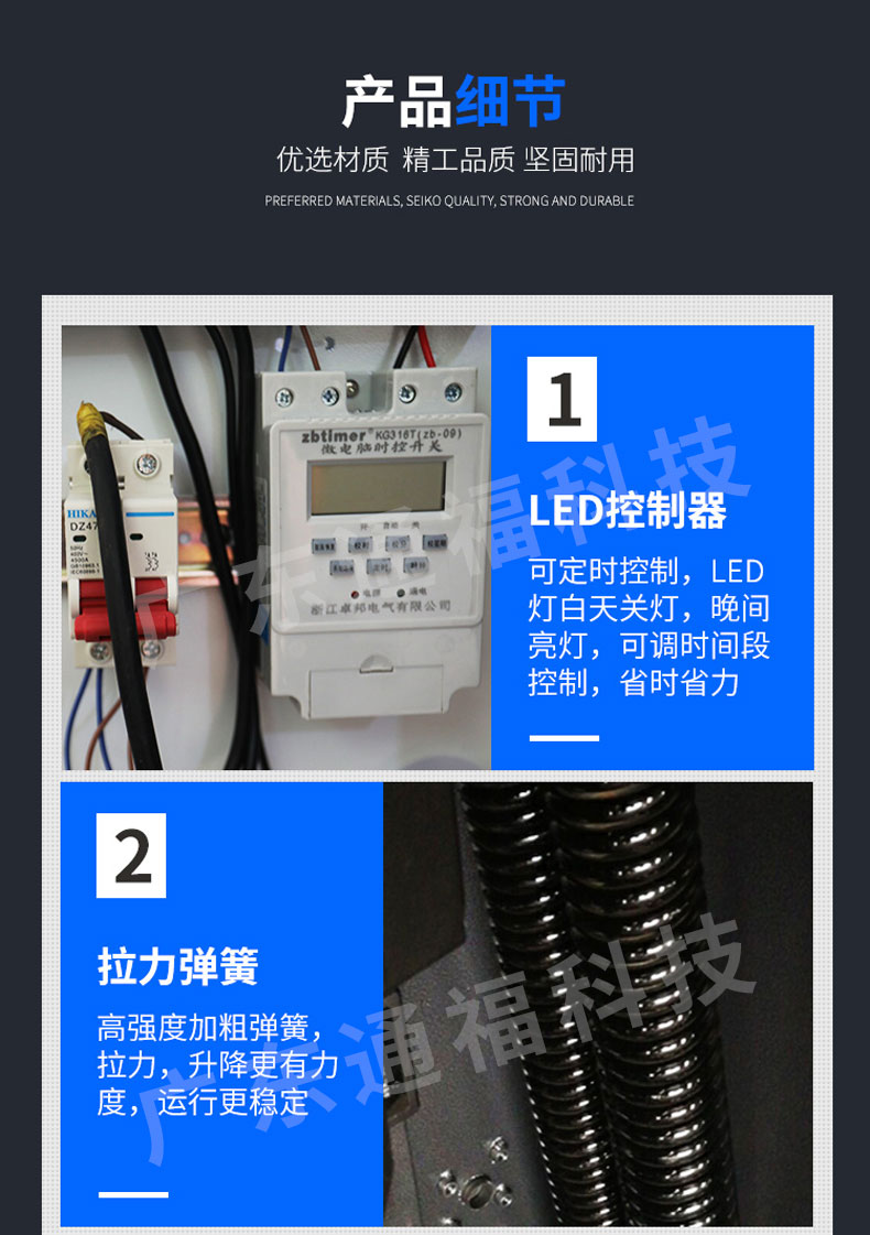 1、广告时间长,提供LED灯条照明,可持久展示,夜间效果尤甚;