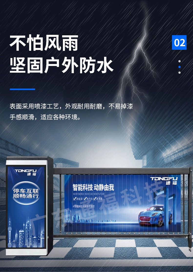 6、本身具有传统道闸的防水,抗风,抗震等特点;