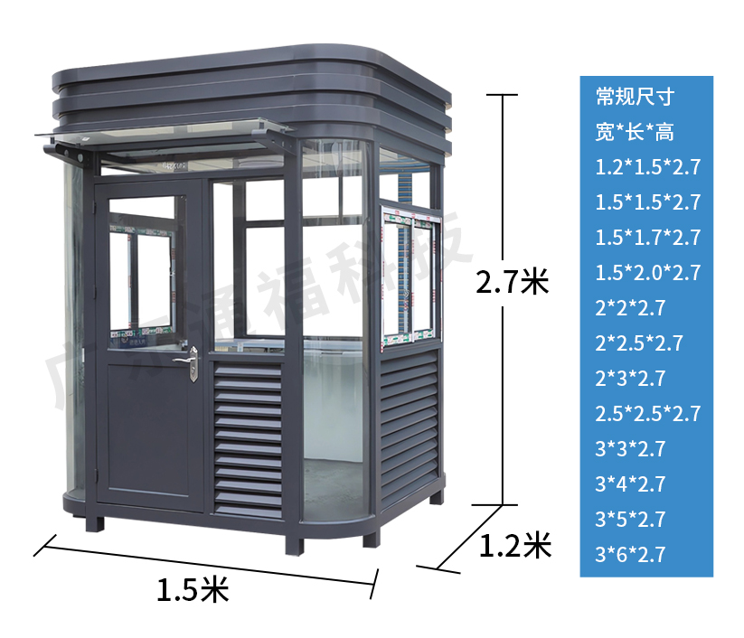 钢结构岗亭相较钢筋混凝土岗亭大小只有钢筋混凝土的二分之一,但同等荷载条件承受下,钢结构岗亭北钢筋混凝土结构的轻。