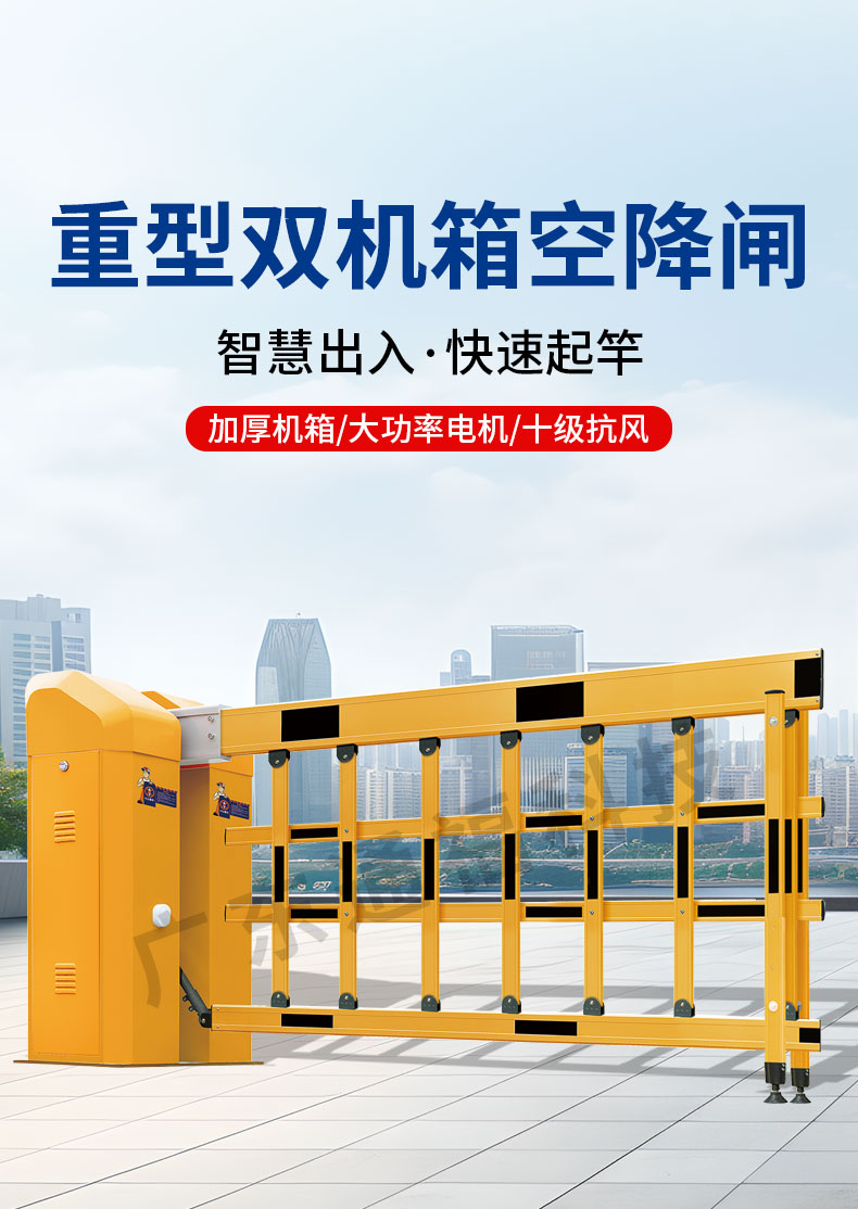 双机箱空降闸设计独特,能够在强风环境下保持稳固,保障通行安全。其抗风性能使其适用于户外场所,特别是在风力较大的地区。