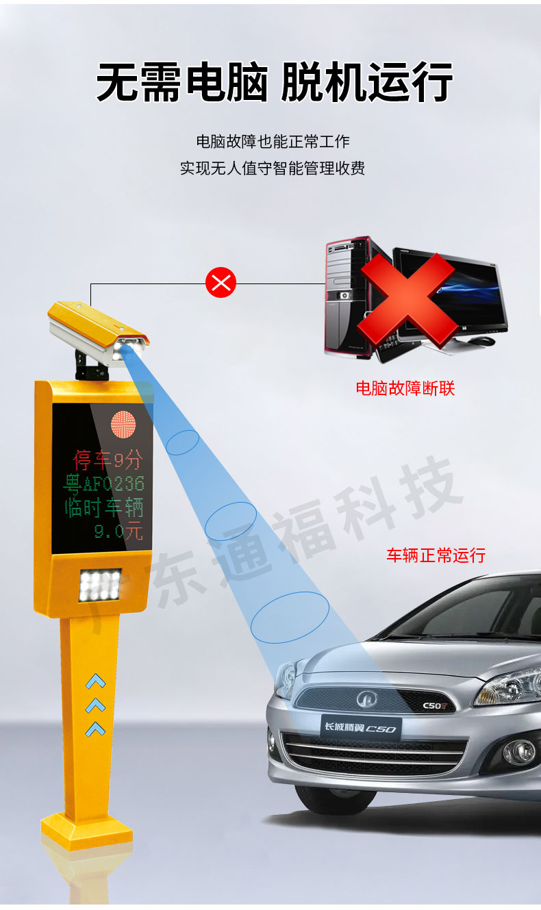 双机箱空降闸可以与收费系统相结合,根据车辆类型和通行时间自动计算费用,并提供打印票据的功能。